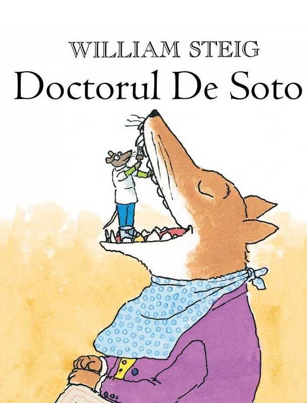 Doctorul De Soto de William Steig (traducere din limba engleză de Laura Albulescu) este una dintre cele mai amuzante și mai inteligente cărți pentru copii sub șapte ani. Îi are protagoniști pe De Soto, dentist de animale și pe soția sa, care e asistentă și îl ajută să trateze orice animal, pe cât se poate, fără dureri. Cam ca un fel de Doctori Aumădoare în tandem, numai că ei nu sunt domni, sunt șoareci, și șoareci fiind, refuză să se plaseze, chiar și echipați cu freze și seringi, în fața gurilor deschise ale unor animale care s-ar hrăni, fie și ocazional, cu șoareci. Oricât de tare i-ar durea dinții pe mâncătorii de șoareci, la soții De Soto nu pot primi alinare, potrivit regulamentului de funcționare a cabinetului. Asta până când la ușă le bate o vulpe, în mare suferință, de care li se face milă. Cartea e o capodoperă de dimensiuni mici și a fost răsplătită și recunoscută ca atare, nu numai de generațiile de cititori pe care le-a cucerit de la apariție, în 1982, dar și prin două distincții prestigioase. În 1983 a primit National Book Award for Young People's Literature și în același an, a fost desemnată ca una dintre cărțile Newbery Honour Book, distincție de top în lumea literaturii pentru copii. E una dintre acele povești care te fac să râzi numai când îți amintești că le-ai citit.