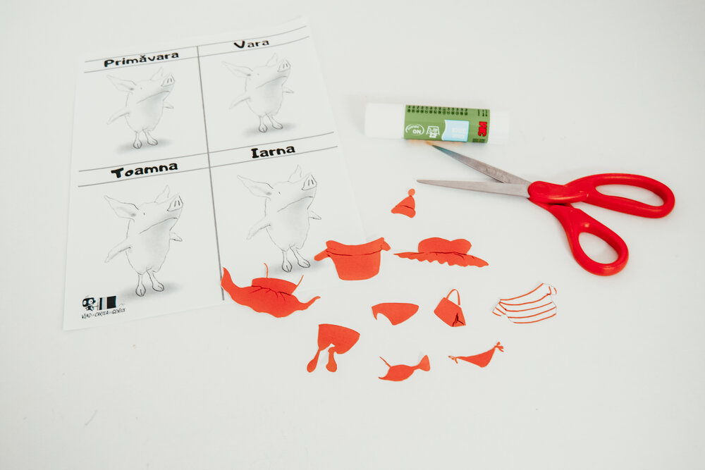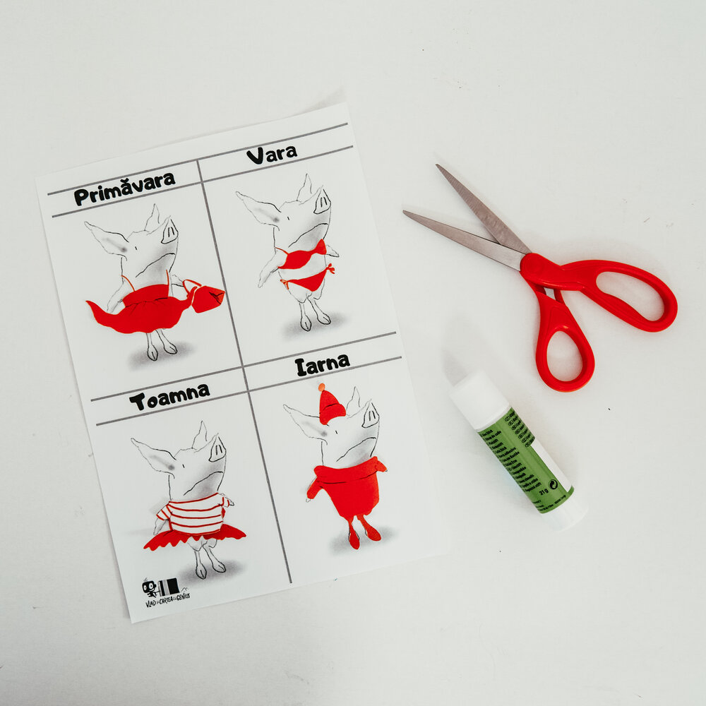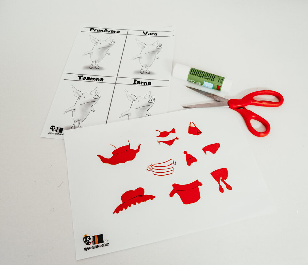 Materiale necesare: șabloane pentru vestimentația Oliviei, lipici, foarfecă.