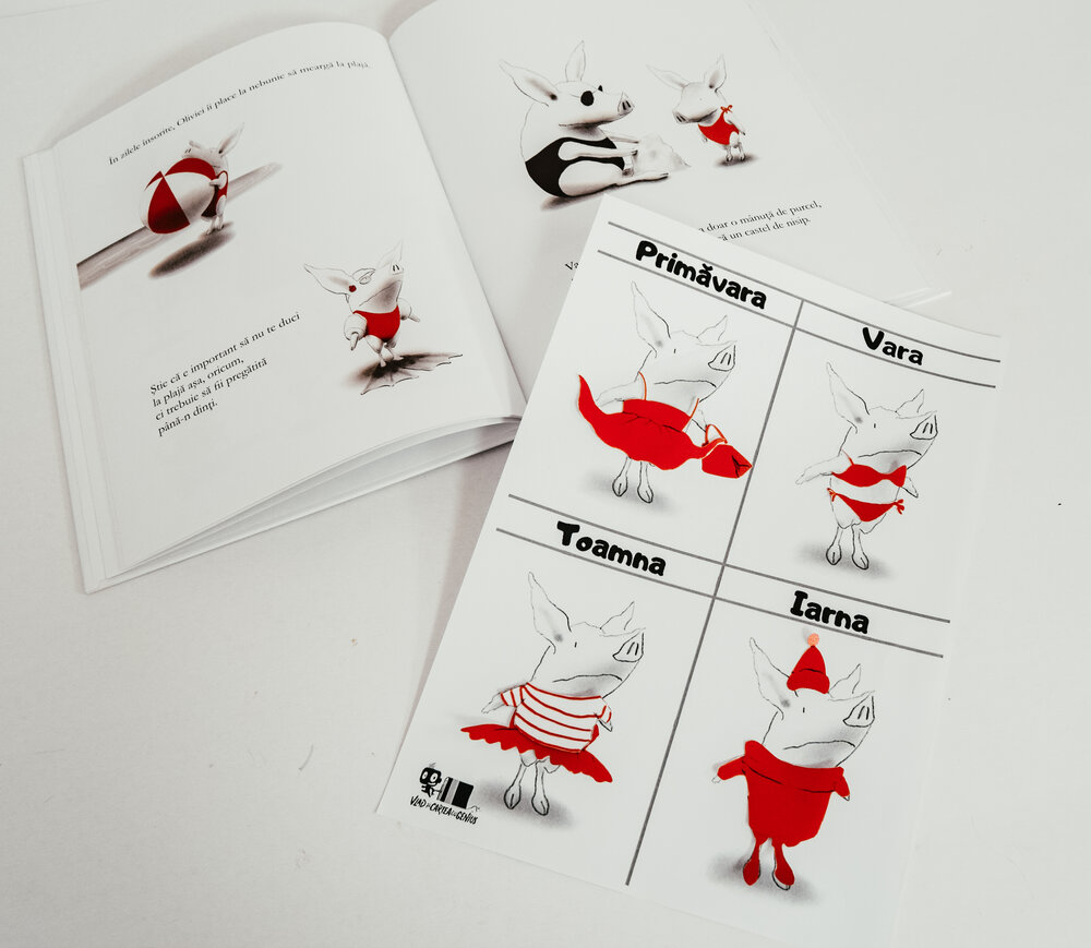 Noi am propus patru ținute pentru Olivia, una pentru fiecare anotimp, inspirate de cartea „Olivia” de Ian Falconer.