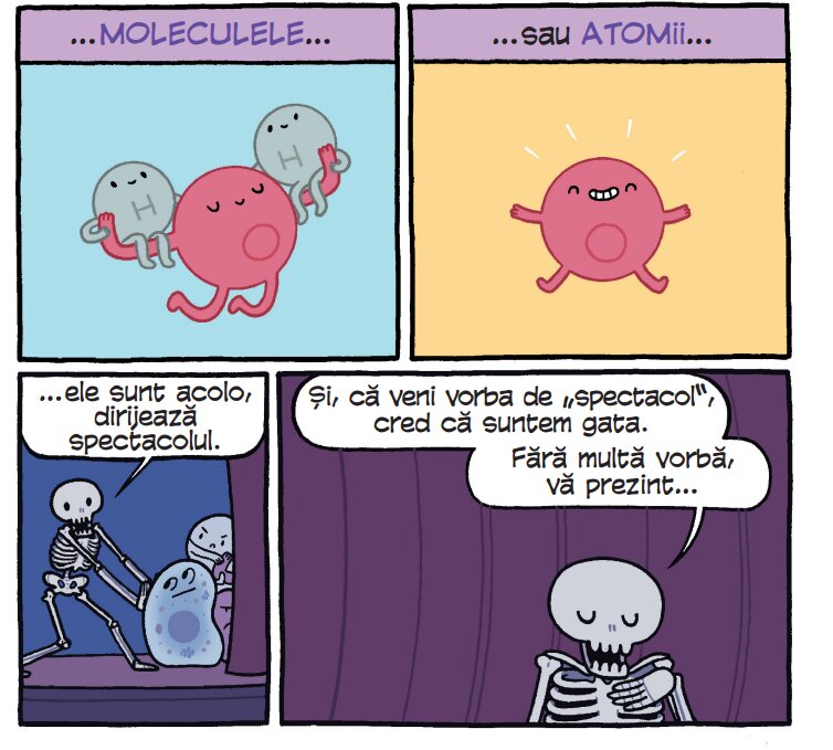 Volumul acesta este o carte din categoria benzilor desenate, Maris Wicks fiind cunoscută în special pentru acest gen de cărți. Se adresează copiilor puțin mai mari, întrucât subiectele abordate sunt ceva mai complexe. Povestitorul ei este un schelet care povestește totul despre componentele corpului uman, nivelurile sale de organizare, curiozități privitoare la fracturi, entorse, răceli, tăieturi, cum se manifestă pubertatea și chiar cum apar bebelușii. În același timp, oferă sfaturi înțelepte legate de alimentație, igienă și siguranța personală!