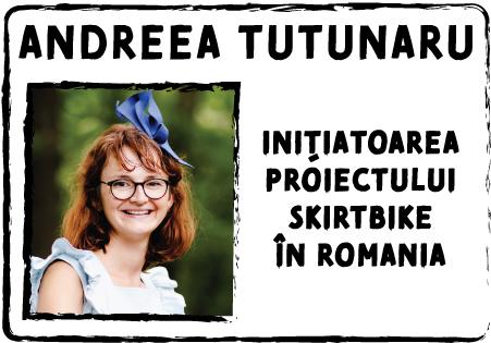 Numele meu este Andreea Tutunaru, sunt mama lui Gruia și a Anei, initiatoarea proiectului SkirtBike în Romania, lucrez într-un birou de proiectare in Belgia ca modelator BIM și in timpul liber sunt creatoarea papusilor copiiilor mei și a altor copii. Mai exact creez povesti din inima sub numele de Les Histoires du coeur.