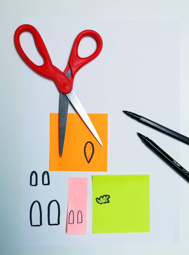 - un morcov pe post-it-ul portocaliu