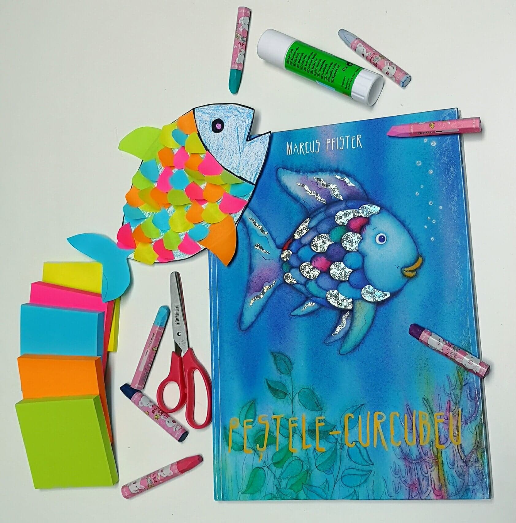 O carte colorată și decorată cu porțiuni de sclipici va fi întotdeauna pe gustul copiilor, însă mesajul din spatele ilustrațiilor ochioase oferă minunate învățături despre frumusețe, prietenie și singurătate. Inspirându-ne din farmecul ilustrațiilor, am personalizat un pește-curcubeu ușor de reprodus de către copii, cu un strop de ajutor din partea adulților.