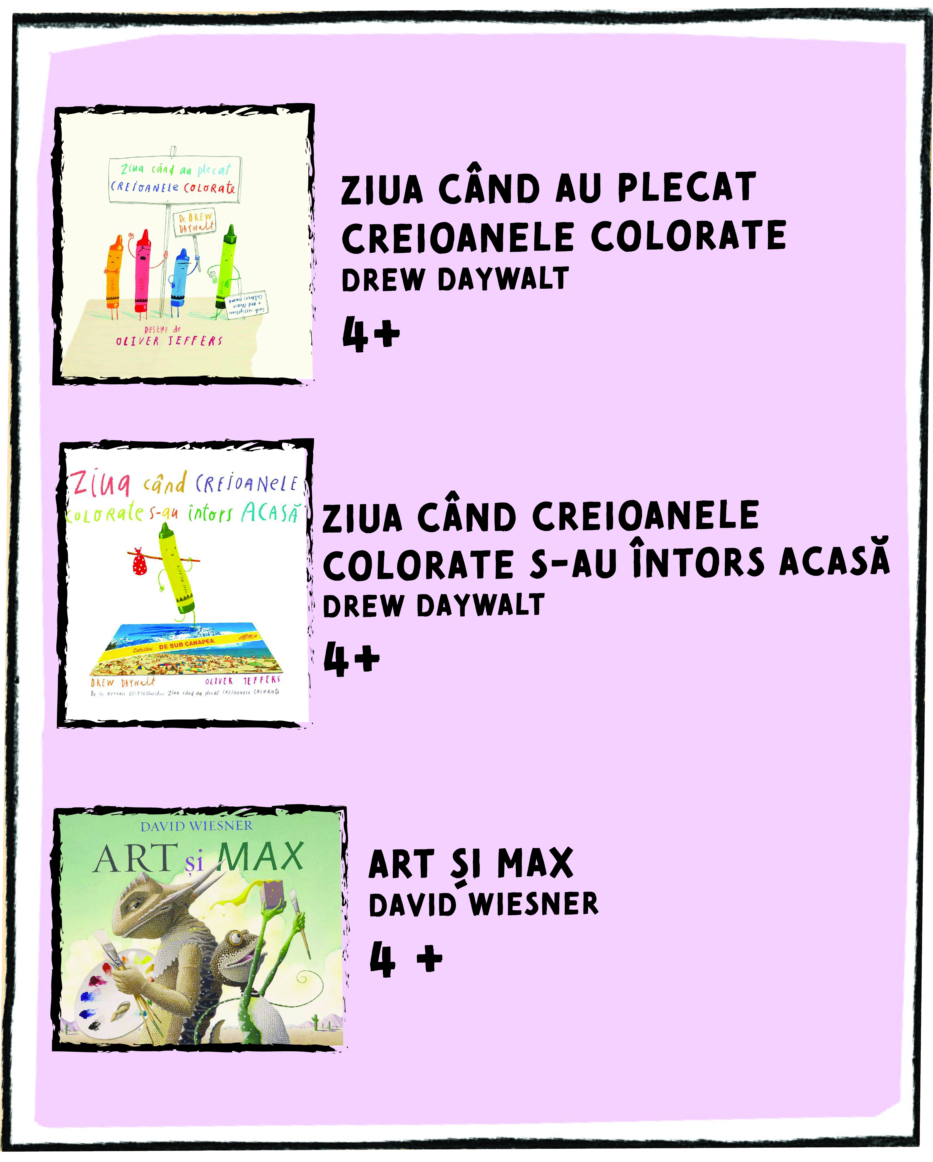 Așa că, dragi părinți, lăsați-vă copiii să creeze liber! Încurajați copiii să rămână încrezători și liberi în exprimare oferindu-le diversitate. Cărțile sunt cele mai bune și la îndemână instrumente pentru stimularea creativității la copii. Iată câteva cărți scrise tocmai cu acest scop: