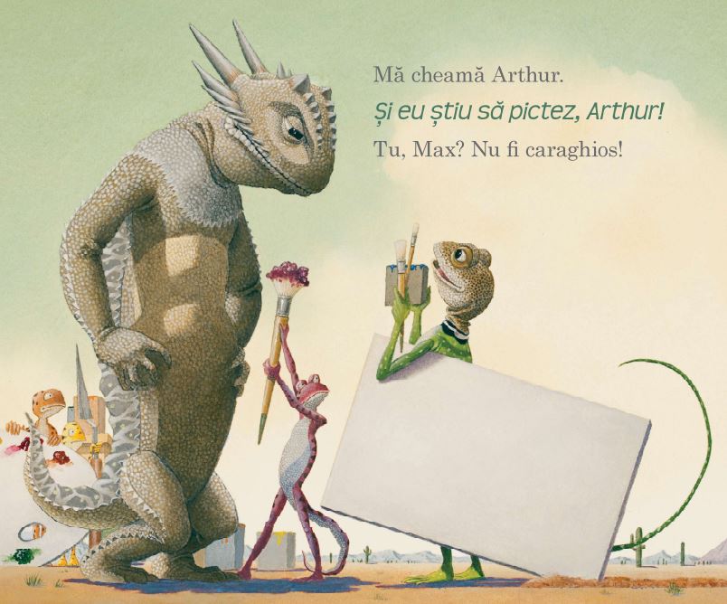 Când Max începe să se umfle în pene pe lângă prietenul lui talentat că și el e în stare să picteze, nimeni nu-și poate imagina dezastrul pe care-l poate provoca o șopârlă cu pretenții de artist. Va reuși oare Max să repare boacăna, odată ce pune gheruța pe pensulă și-l bagă pe Arthur în bucluc? Hai să aflăm împreună ce se întâmplă când doi prieteni pornesc într-o aventură… creativă!