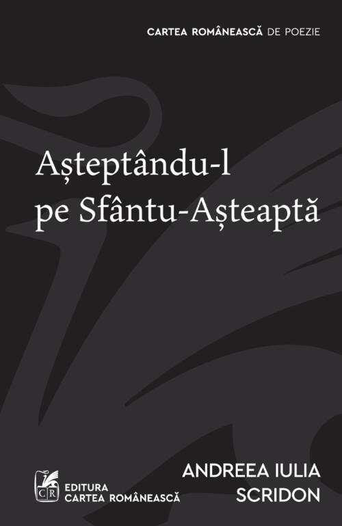 În ochii mei, Andreea lulia Scridon este fenomenală în fiecare mişcare poetică, am urmărit cât de flexibilă e pe scenă și am avut onoarea de a o avea ca invitată la diverse lansări şi dialo-guri. În Aşteptându-l pe Sfântu-Aşteaptă este o povestaşă desăvârşită, o Yesterday Kind of Girl într-un Cluj care îşi închide toate spitalele de păpuşi, apoi îşi umple dorul într-o Philadelphia 2003 sub petale de cireș cu toate păpuşile ei, Mariana, Matrioșca, chinezoaica Yoo și fiul ei, Cain, ca în final să-şi trădeze tristețea în fiecare gest. Tărâmul ei este magic, dar foarte pământesc în acelaşi timp; trecutul şi prezentul se întrepătrund unde lumina caută fericirea în întuneric. Citiți-o şi bucurați-vă de ea, este unică precum o făptură arhaică și efemeră care ne conduce de mână într-o lume mult mai bună decât a noastră: memoria, mintea şi inima ei.