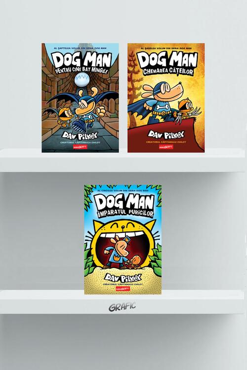Pachetul Dog Man conține volumele 5, 6 și 7 din seria cu același nume.